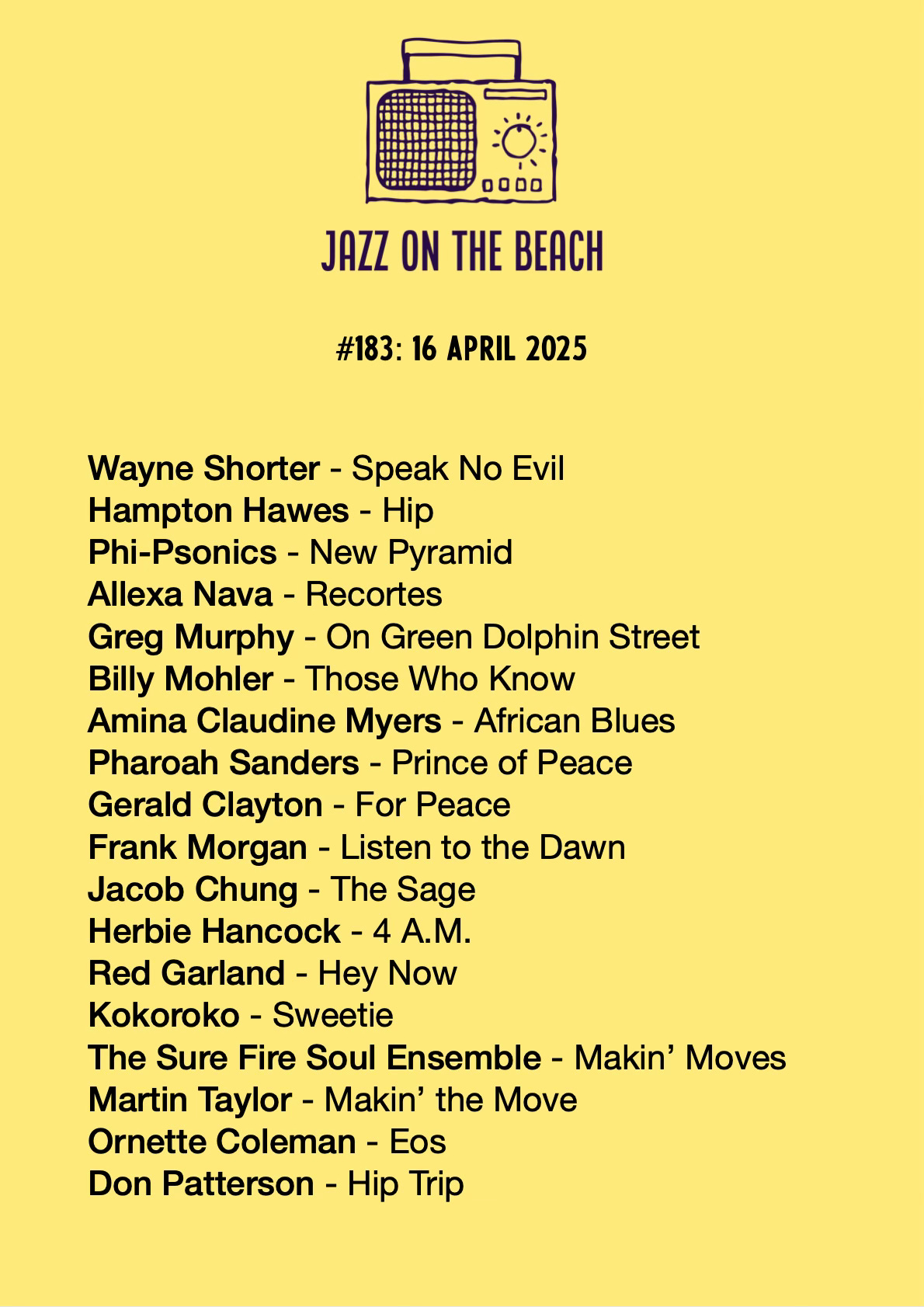 To listen to this week’s Jazz on The Beach on Mixcloud, just click below: